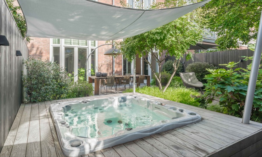 Deze compacte stadstuin biedt verschillende gebruikszones voor zitten, tafelen en ontspannen, elk in een eigen groen kader. Slim geïntegreerde opslag voor materialen en techniek brengt rust in het ontwerp. Weelderige beplanting zorgt het hele jaar voor een aantrekkelijk beeld en schermt de tuin af. Een rustige en veelzijdige buitenruimte midden in de stad.