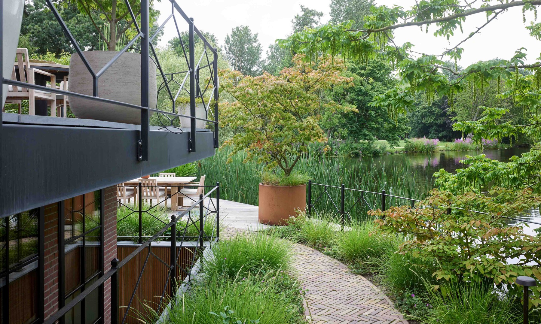 Deze stadstuin sluit zorgvuldig aan bij het historische pand en zijn omgeving. Door het behoud en slim inpassen van bestaande bomen ontstaat een weelderig en statig beeld. De tuin biedt zowel openheid als privacy en combineert authentieke materialen met een doordachte inrichting. Het terras en meubilair zijn in overleg met de opdrachtgever geselecteerd.