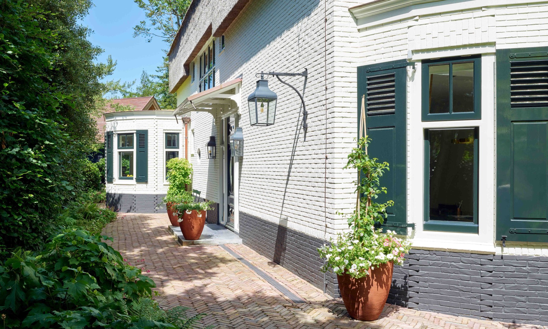 De actieve betrokkenheid van de opdrachtgever bij de plantkeuze resulteerde in een authentieke en rijk gelaagde tuin. Monumentale bomen en ronde lijnen in de borders sluiten aan bij de architectuur van het landhuis. Bestrating en beplanting verbinden de villa vloeiend met het bijgebouw, waardoor een uitnodigend en samenhangend geheel ontstaat.